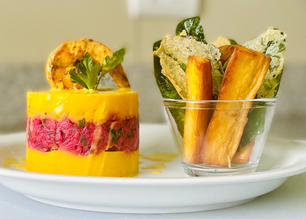 For me the Causa is a test of skill. The basics involve getting the perfect consistency of mashed potatoes, the right amount of pepper puree, lime juice, and salt. The rest is a matter of vision.