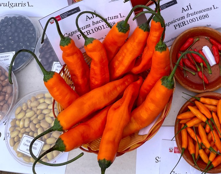 Even though the potato carries the name “amarilla”, and is indeed slightly yellow, what imparts the Causa its brilliant yellow color and makes it different from the mashed potato dish, is the puree of the aji amarillo. To me if there is any single ingredient that carries the brilliance of Peruvian cuisine it is the pepper, omnipresent in every market and store.