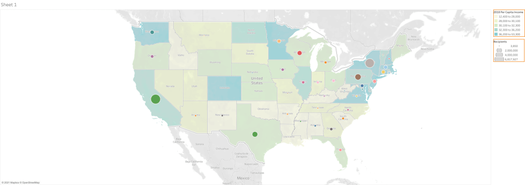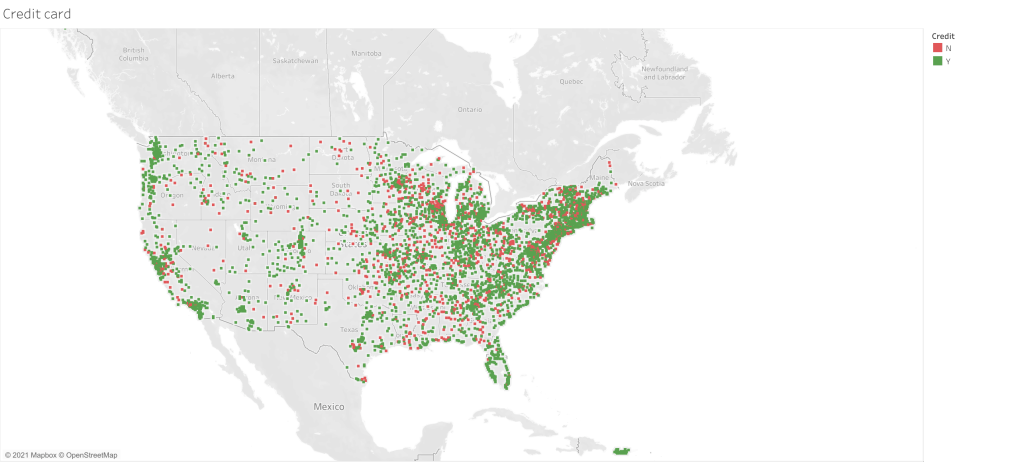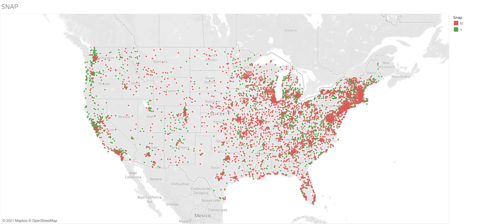 Tableau visualization – Modes of payment – Credit Card, SNAP, SFMNP & WIC