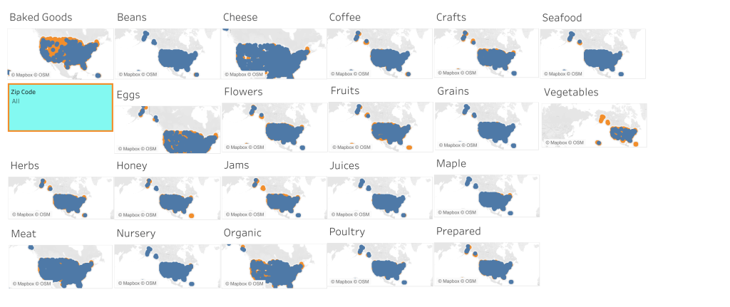 Tableau visualization – U.S. Farmers’ Markets – state, county and zip code T